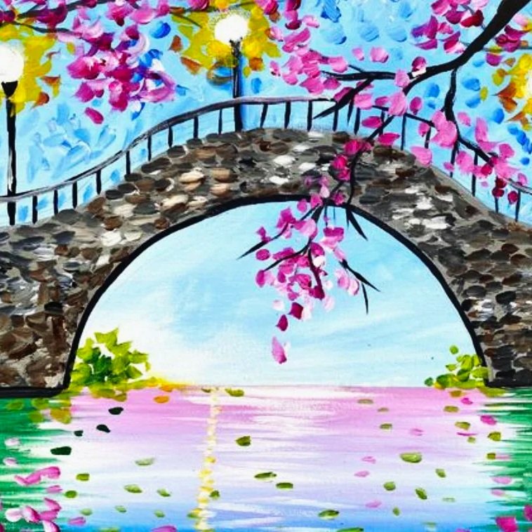 Spring Bridge on CanvasSun. 4/19, 5:30-7:30pm20x16 canvas